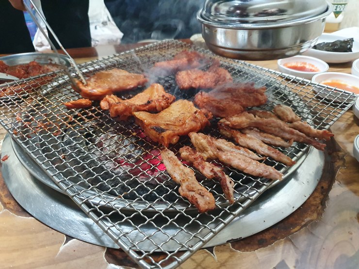 1. 숯불에 구워먹는 닭갈비의 맛은 일품.