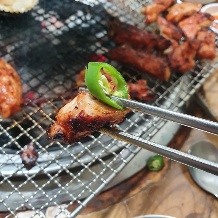 맛있게 익어가고 있는 양념 숯불닭갈비.