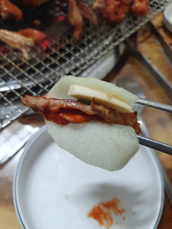 매콤한 양념장과 쌈무를 곁들여 먹는것이 저는 그렇게 맛있더라구요.