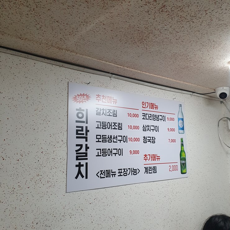 희락갈치 메뉴판을 보니, 가성비가 매우 훌륭하네요.