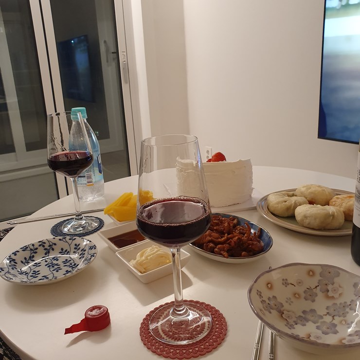 나름 케이크도 있고, 와인도 한병 깠구요. ㅎㅎ