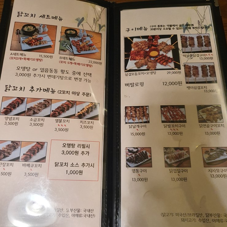 꼬치전문점 보다는 닭꼬치 전문점에 가깝다고 느꼈던 것 중 하나는 메뉴판에서도 보이듯