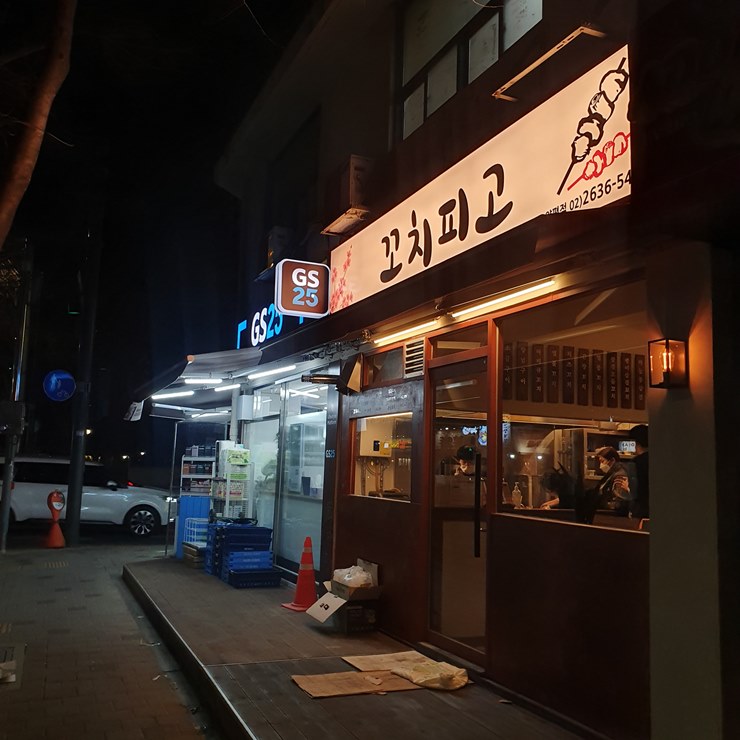 전에 동네 산책할 때에는, 공사중이었는데 어느덧 오픈을 한 꼬치피고.