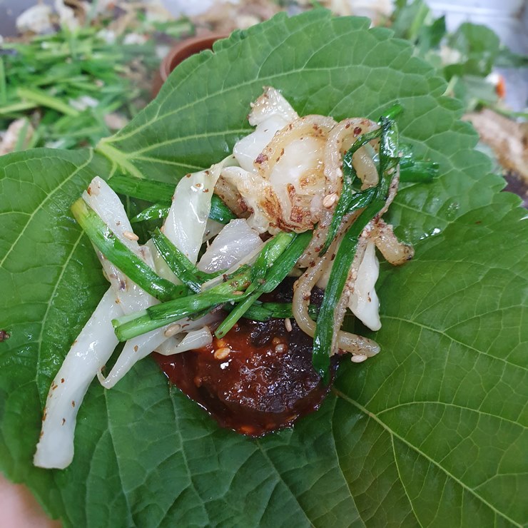 깻잎이랑 같이 먹으면 더 궁합이 좋은 것이, 순대의 잡내(?)를 잡아준달까요?
