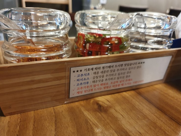 기호에 따라 첨가하여 먹으면 맛있을 양념통이 있습니다.
