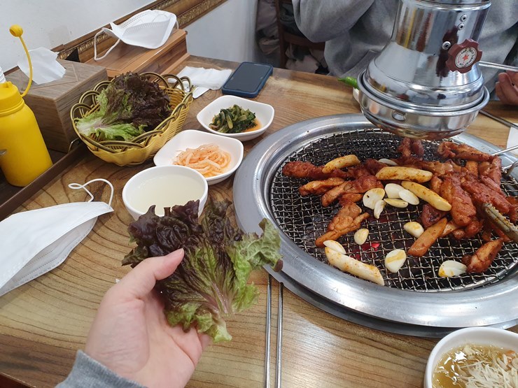닭갈비는 그냥 먹어도 맛있지만, 상추쌈에 먹어도 맛잇어요.