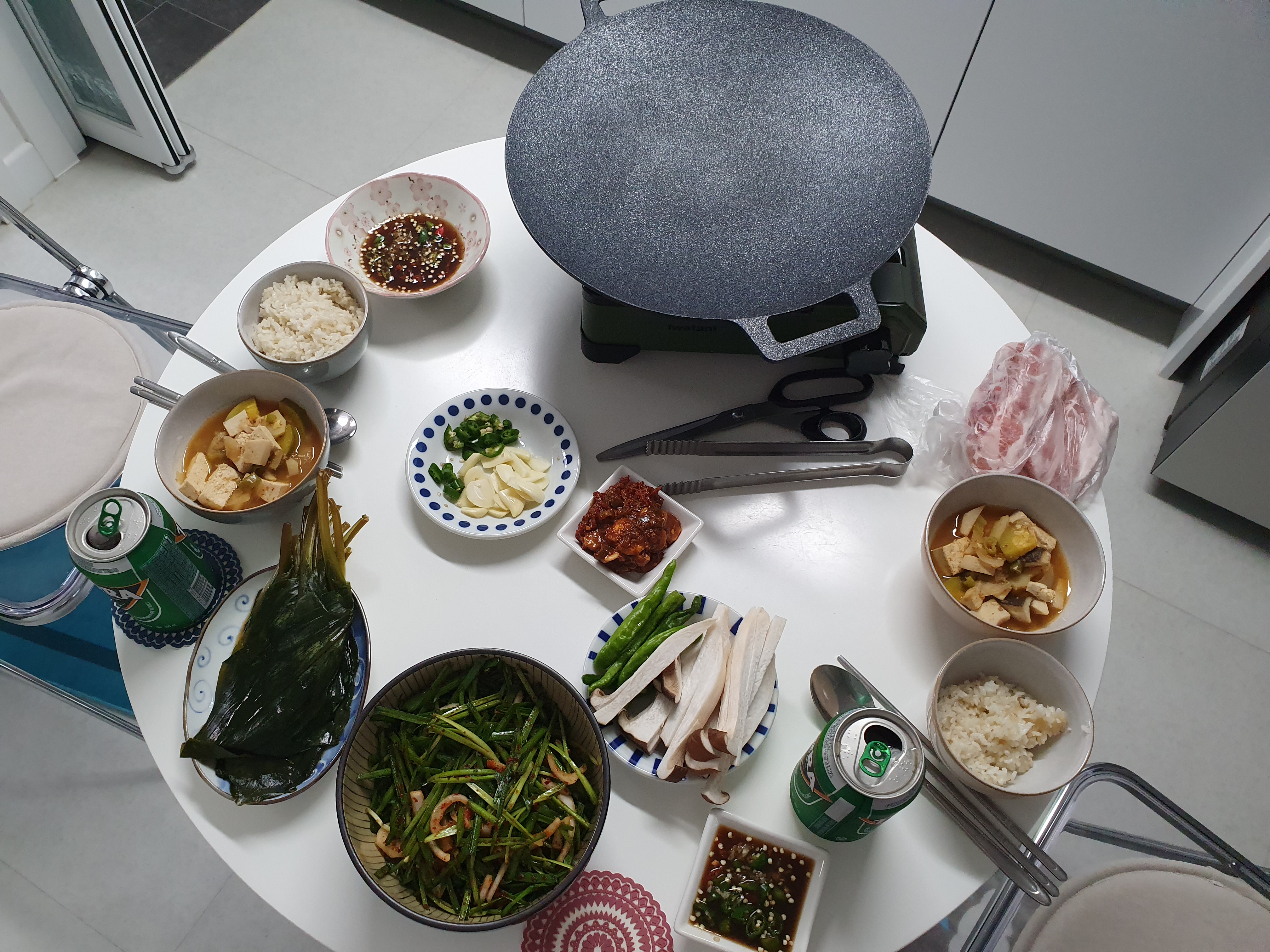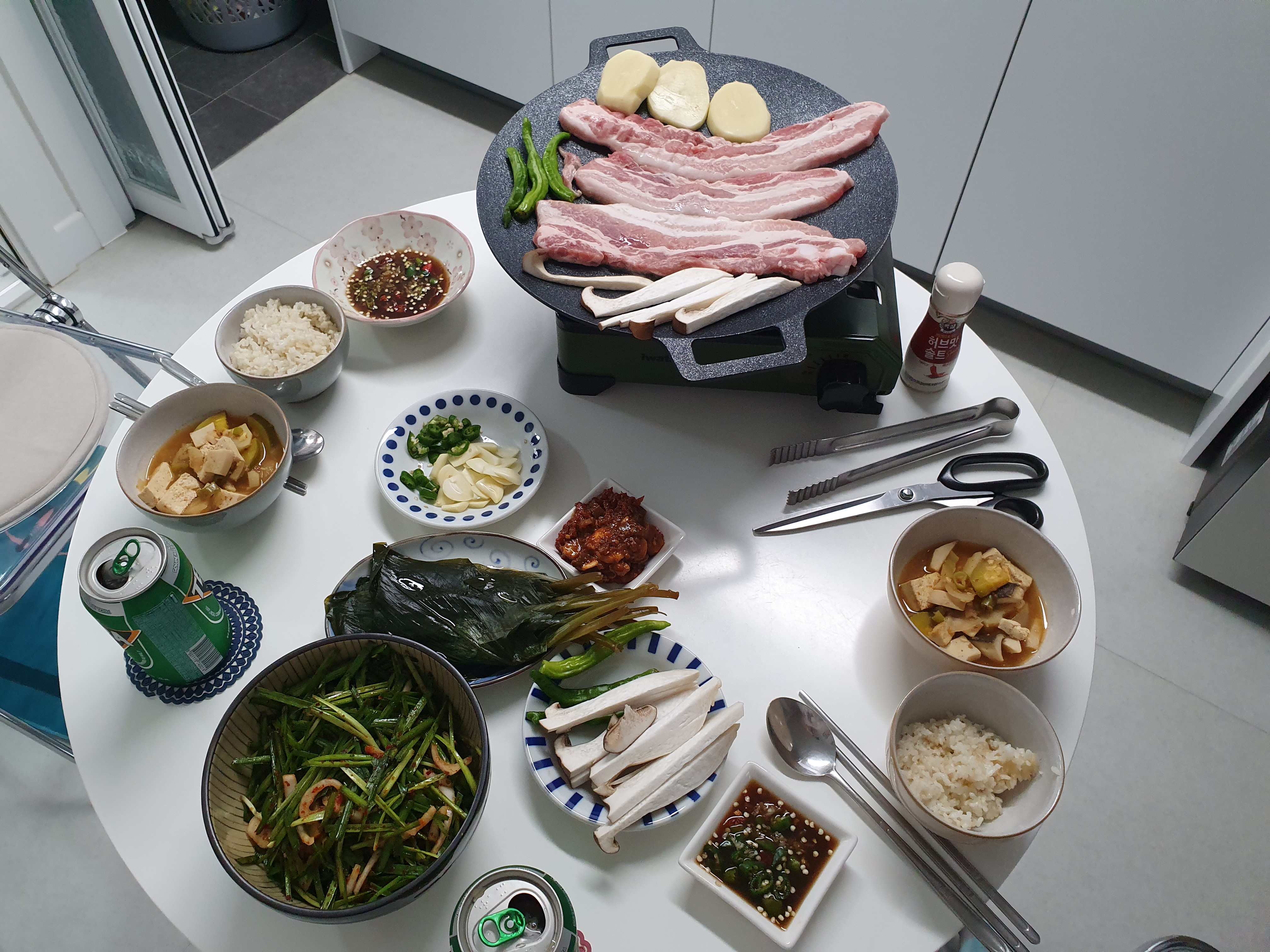 이 날엔, 삼겹살도 같이 먹었나 봅니다.
