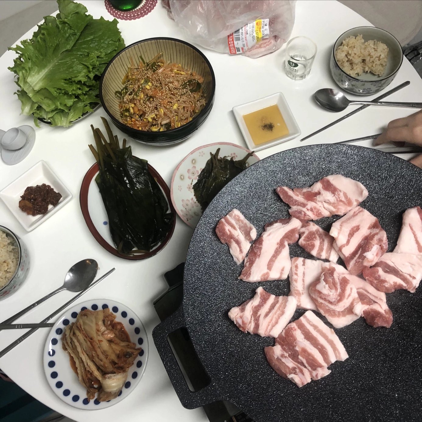 집에서 남편과 삼겹살을 먹어 봅니다.