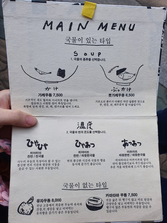 -> 이 말은 처음 방문하시는 분들은 조금 더 무난한 붓가케우동이나 가케 우동을 추천한다는 뜻이기도 합니다. ㅎㅎ