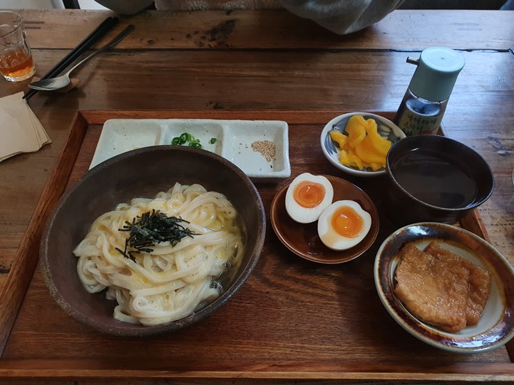 가마타마 우동을 처음 접해본 저로서는 조금 당황스러운 맛이었는데요.