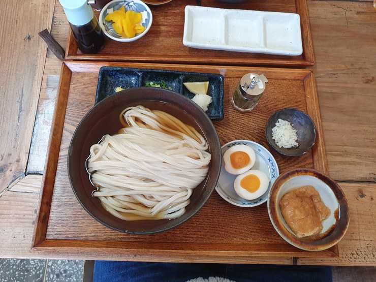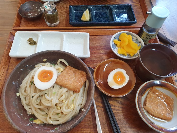 가케우동을 먹겠다고 해놓고, 가마타마 우동으로 변경을 했다지요.