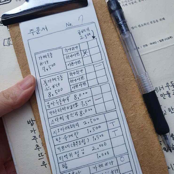 밖에서 대기 할 때, 미리 메뉴판과 주문서를 주십니다.