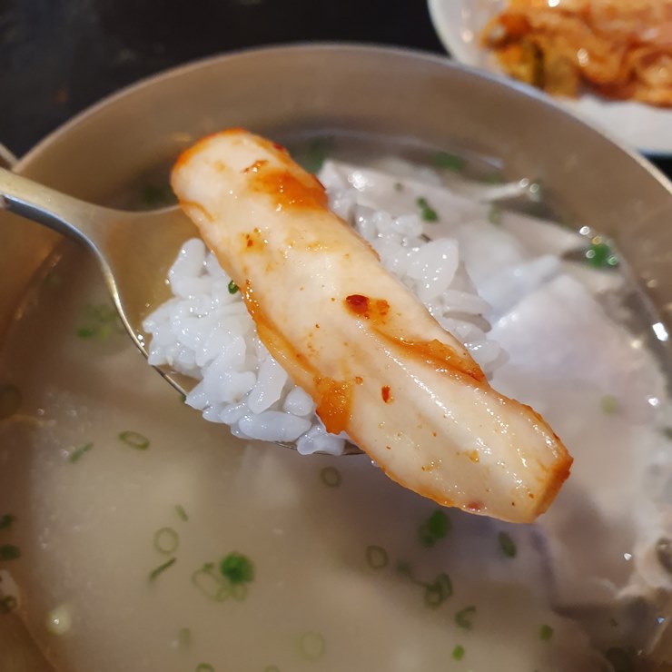 간이 심심해서 맑은 돼지곰탕과 너무 잘 어울렸고, 적당히 익어서 산도도, 시원한 맛도 정말 최고였다.