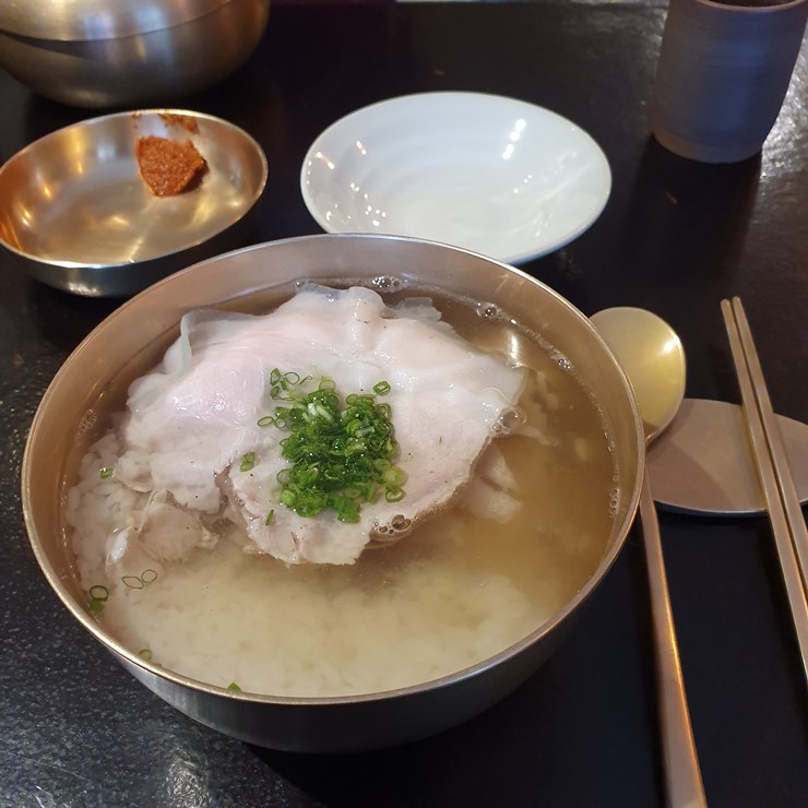 곰탕에 올라간 돼지고기의 비주얼이 흡사 차돌박이 같은 느낌을 주었는데,