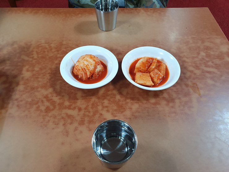 음식을 주문하면, 물과 김치를 셋팅해 주십니다.