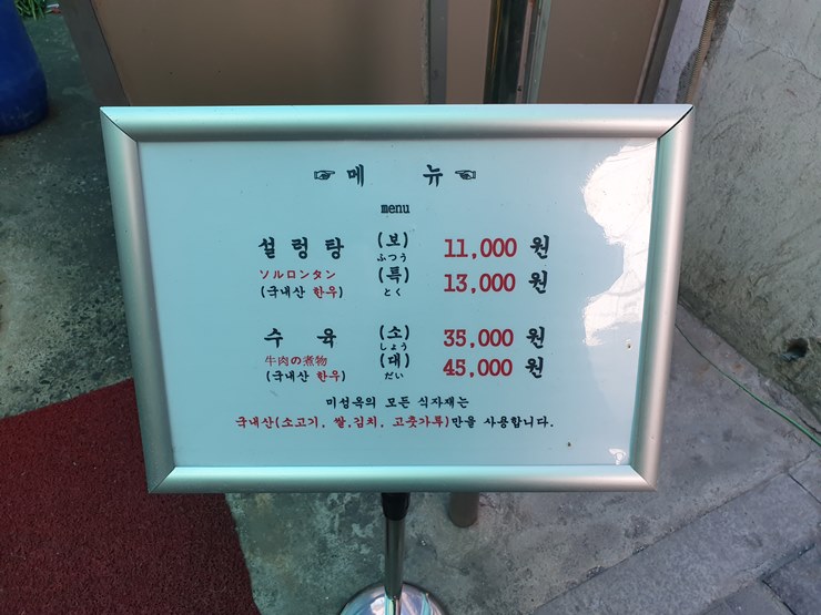 미성옥의 특징으로는, 모든 식자재가 국내산이라는 것.