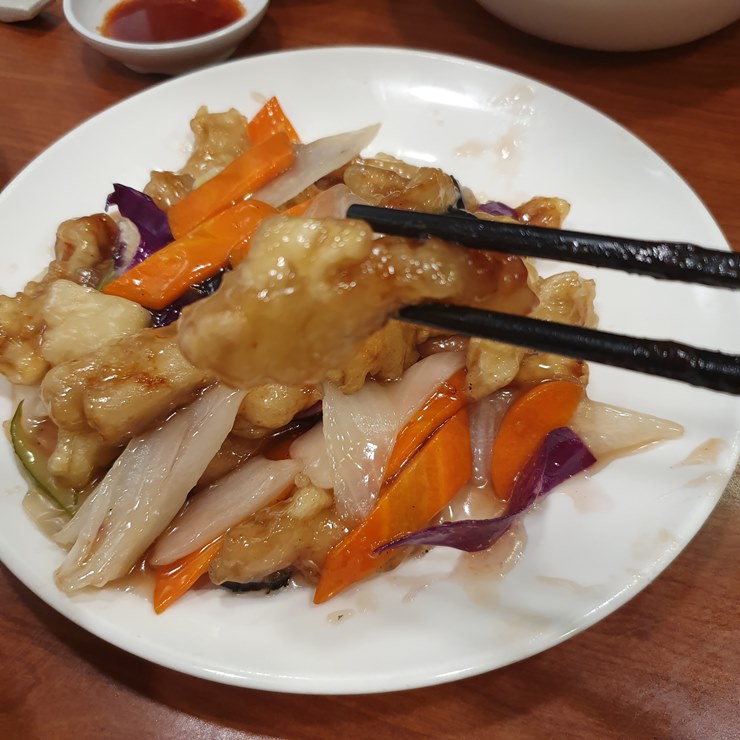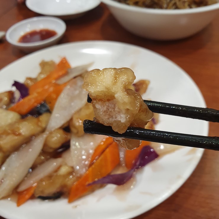 게다가 탕수육 고기도 부드러웠고, 부먹 탕수육이라고 해서 눅눅함이 거슬리는 것도 아니었습니다.