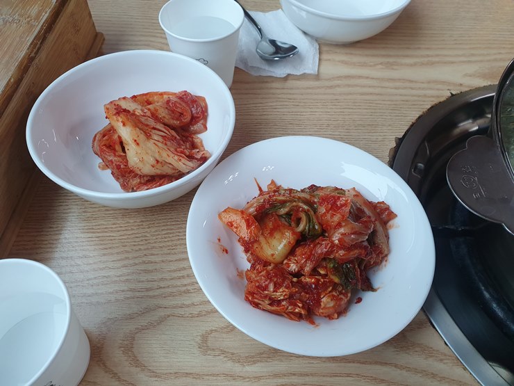 칼국수가 끓는동안 엄마와 공기밥에 신나게 김치를 먹었습니다.