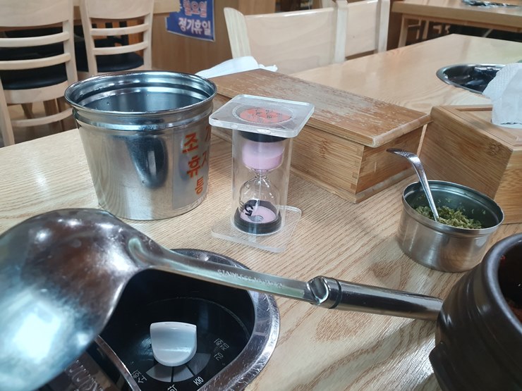 모래시계의 모래가 다 빠져 나갈때까지 잠깐 기다려줬다가 식사를 시작하도록 합니다.