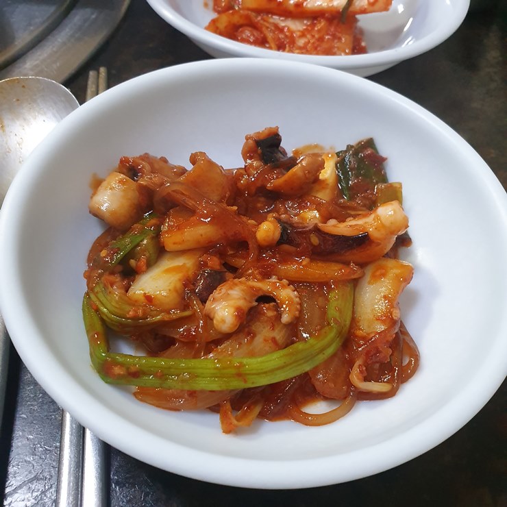 우리가 시킨 주 메뉴는 낙지 볶음이니, 곁들여 먹는 찬에 큰 욕심을 내지 말자 생각을 했지요.