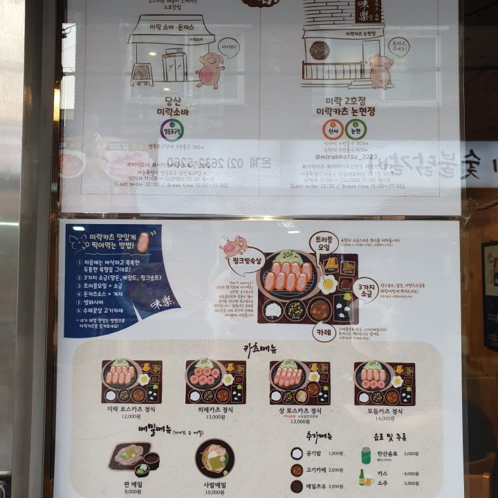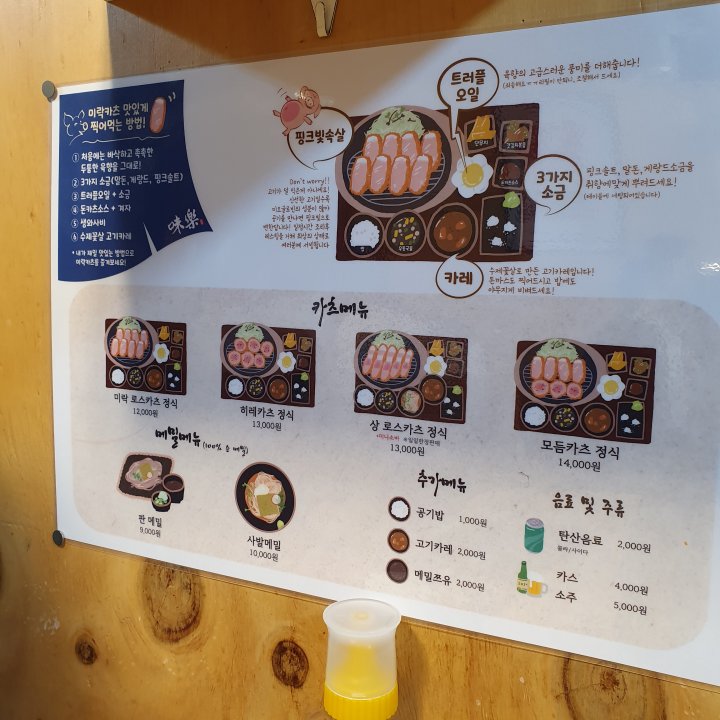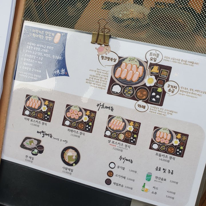 미락카츠 가격 및 메뉴.