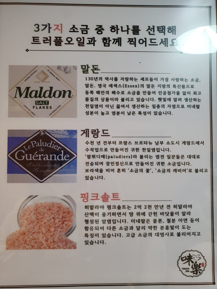 미락카츠에는 무려 3종의 소금이 준비되어 있습니다.
