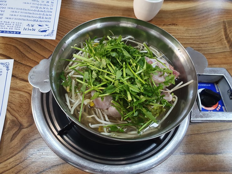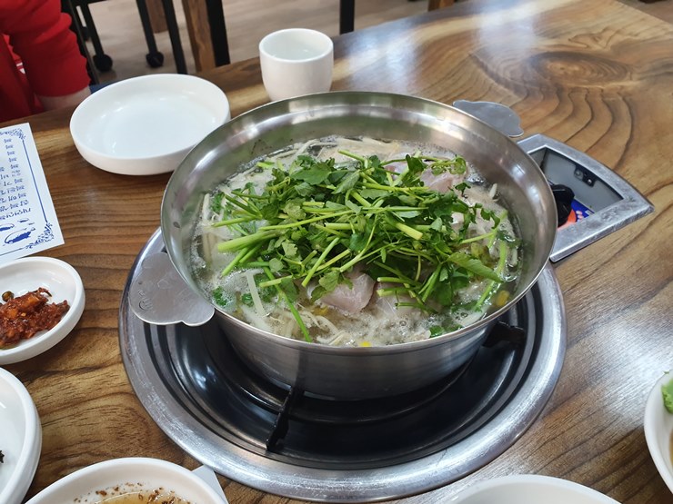콩나물과 미나리가 들어가서 국물이 아주 시원하다는것이 복지리탕의 특징 아니겠습니까.ㅎㅎ