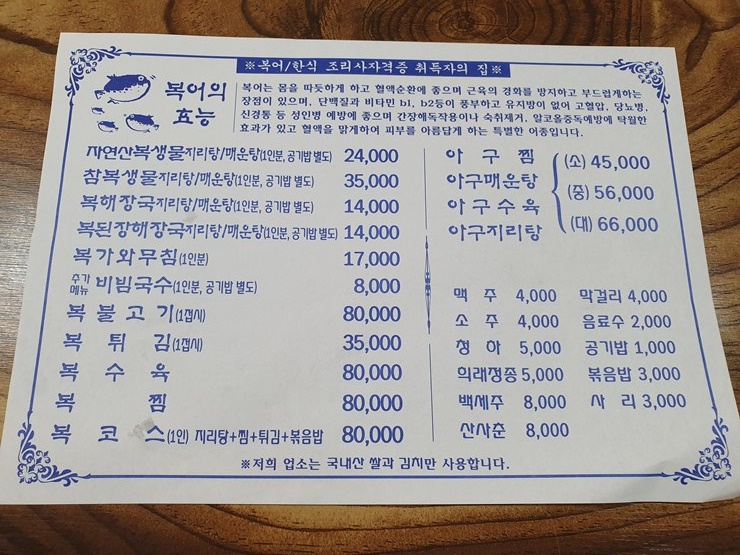 사실 복어 전문점에서는 복어 자격증 없이는 장사를 할 수가 없긴하죠. ㅎㅎ