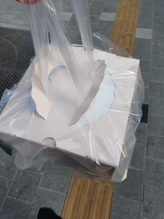 케이크가 흔들리지 않게 포장을 해주십니다.