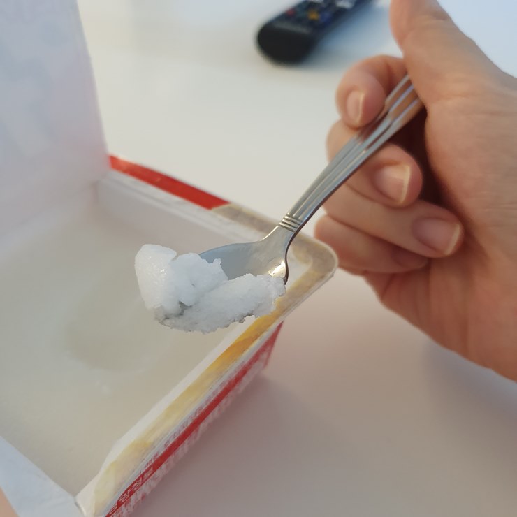 꽁꽁 얼었어도, 샤베트라 쉽게 떠먹을 수 있습니다.