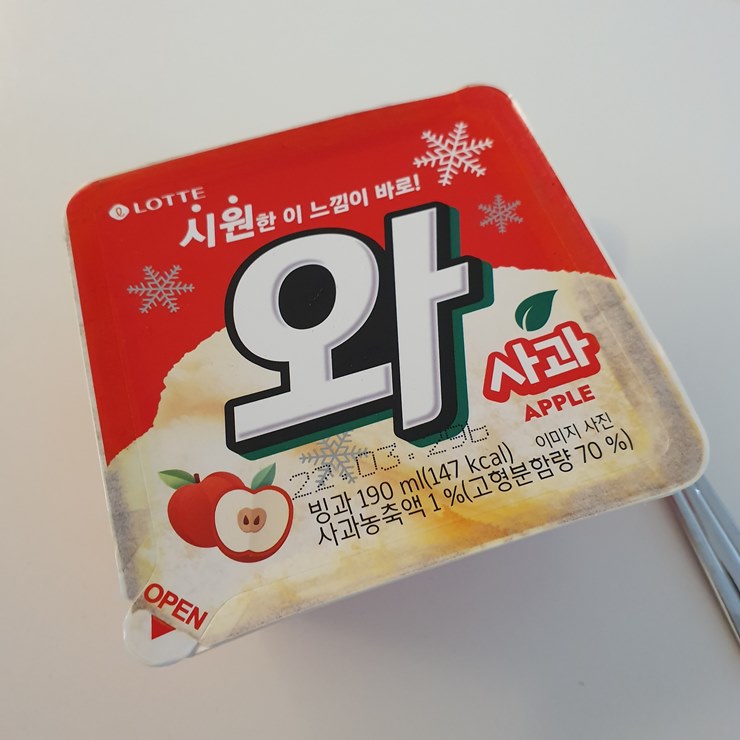 제가 느끼기엔 와 사과맛 샤베트가 훨씬더 사과의 맛과 향이 진하게 다가왔습니다.