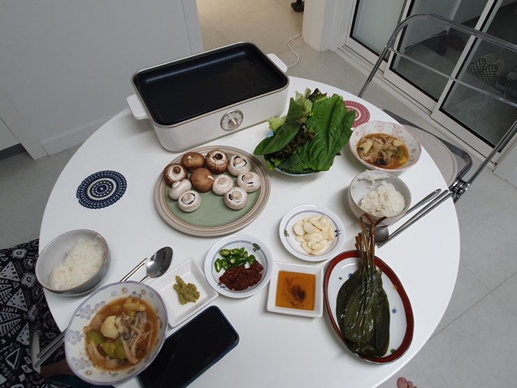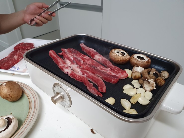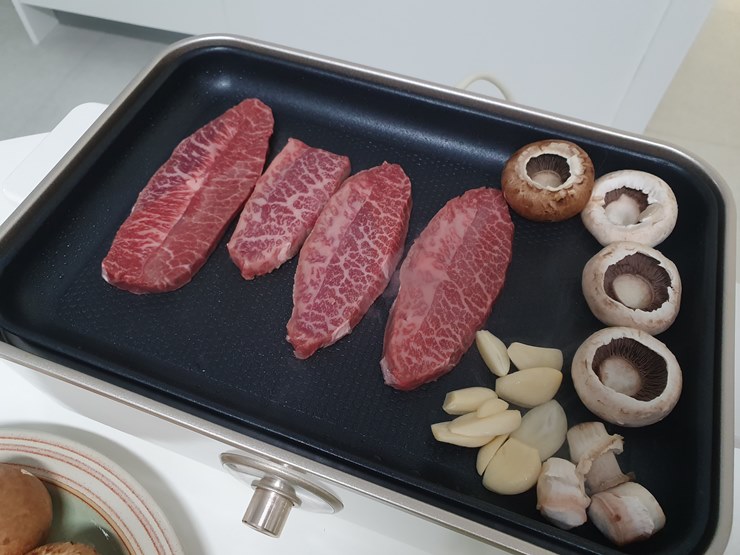 한우 먹을 땐 표고버섯도 맛있지만, 양송이 버섯도 최고지요.