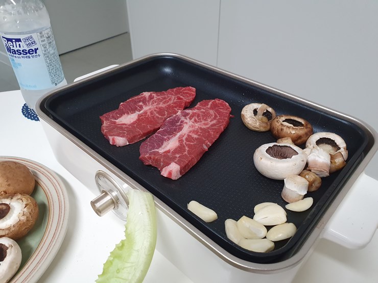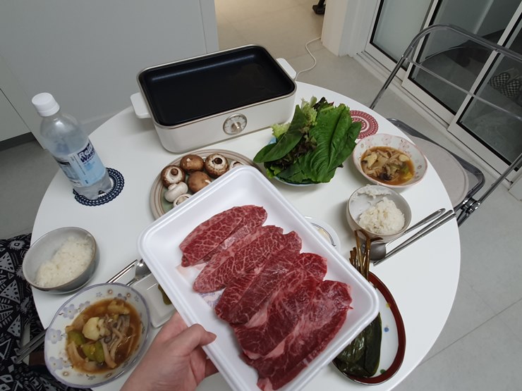 남편과 소고기 먹을 준비를 제대로 했지요. ㅋㅋ