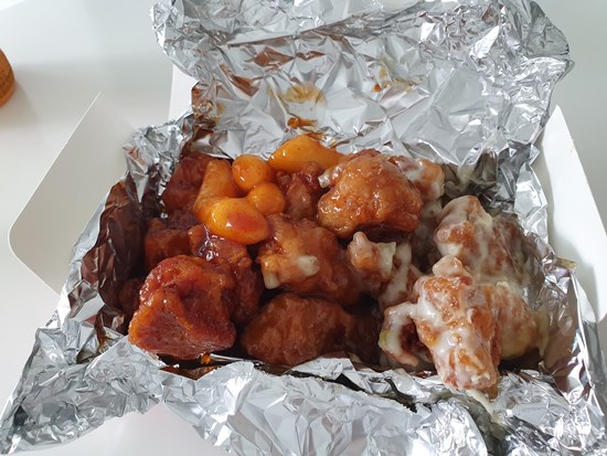 이건 과일 닭강정인지 깐풍 닭강정인지 알 수는 없지만,