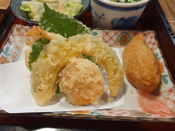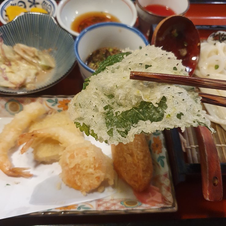 자루우동 정식 튀김 구성은