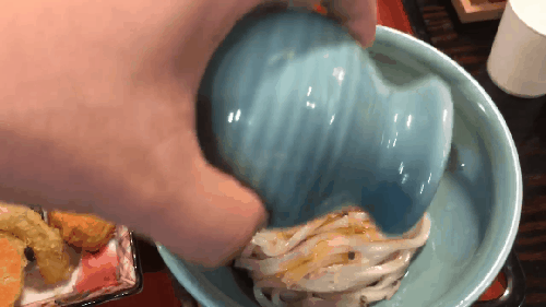 붓가케 우동에 튀김가루를 살짝 넣은 남편.