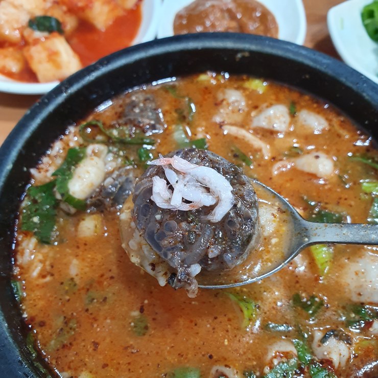 화목순대국 한 숟갈 듬뿍 떠봤습니다.