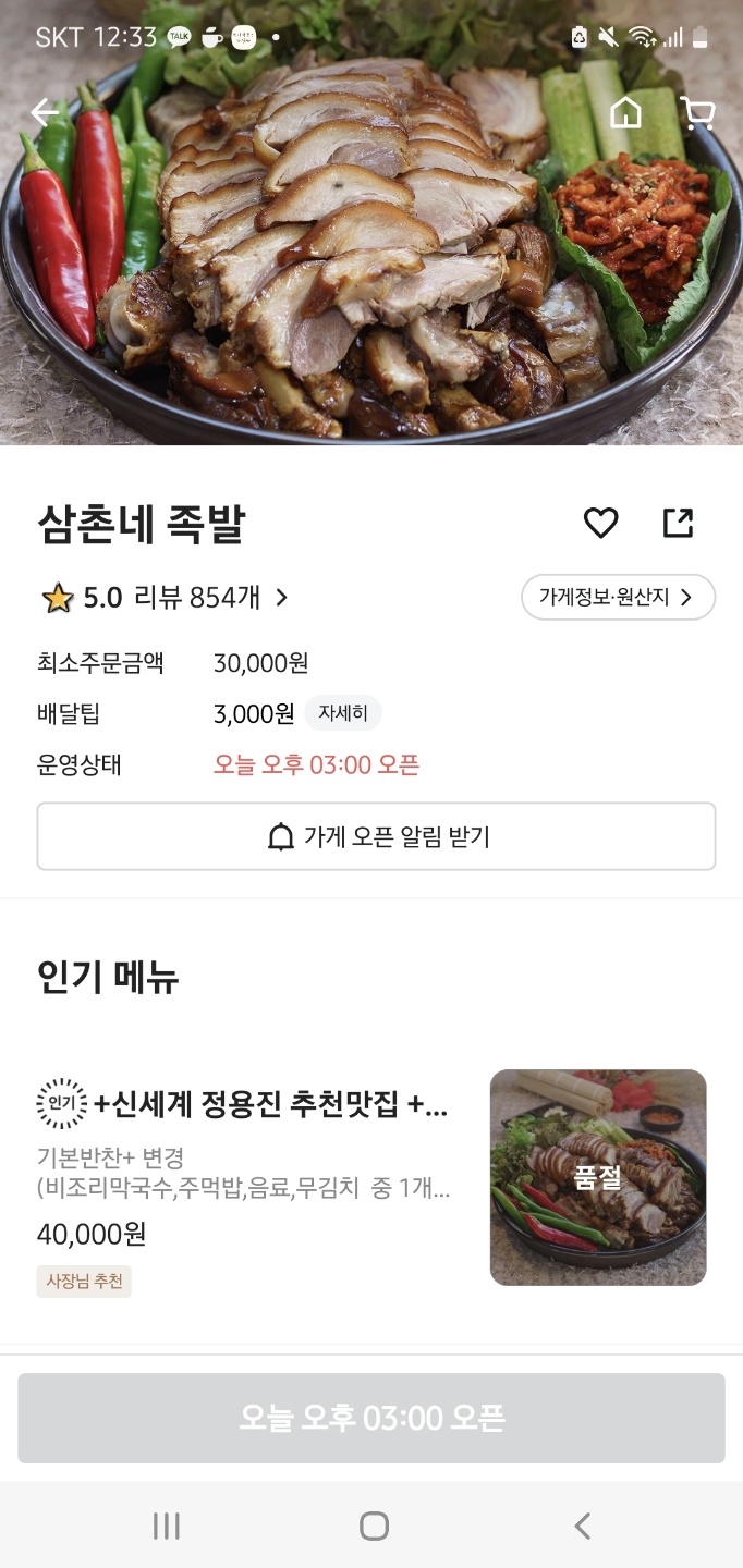 배달의 민족을 통해 분당 족발 맛집 삼촌네 족발을 시켜봤습니다.