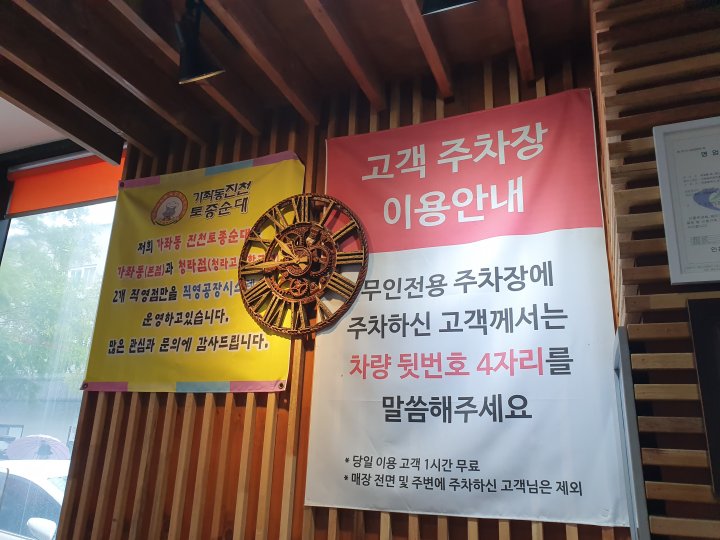 이 곳은 진천토종순대 청라점을 이용하는 고객에게 1시간 무료주차를 제공해줍니다.