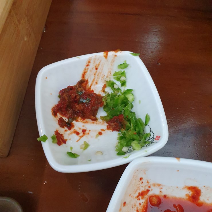 해장국 양념장과 다진 청양고추를 요청했어요.
