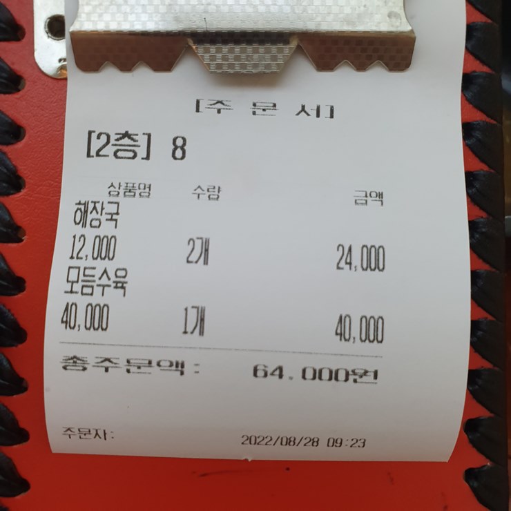 해장국 두그릇과 모듬수육을 주문하였습니다.