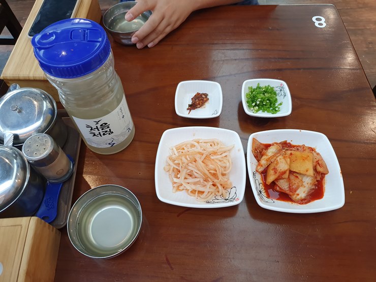 밑찬으로 무생채, 배추김치, 조개젓갈, 그리고 다진청양고추를 주십니다.