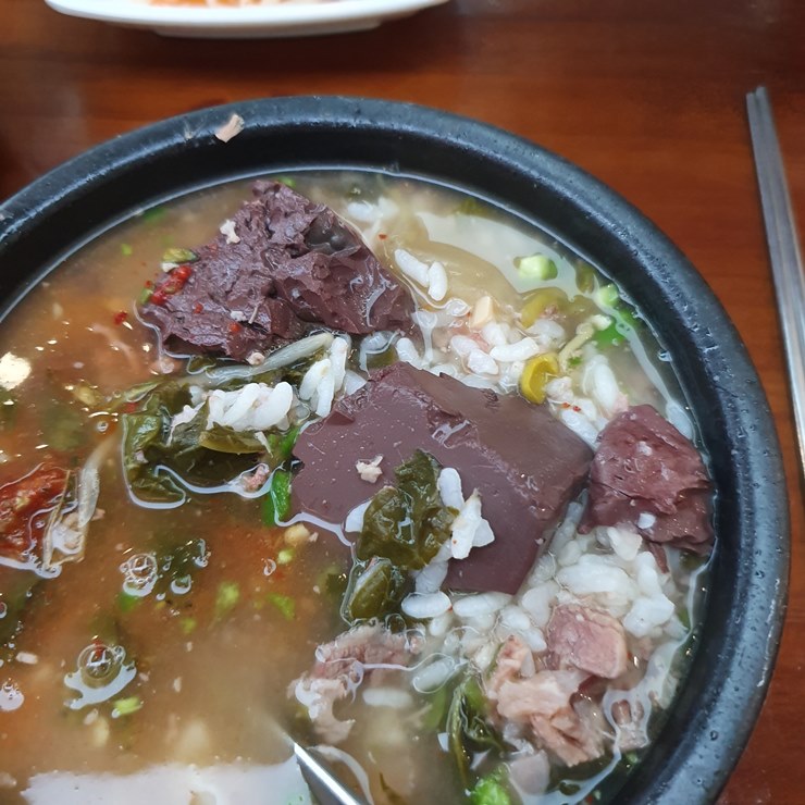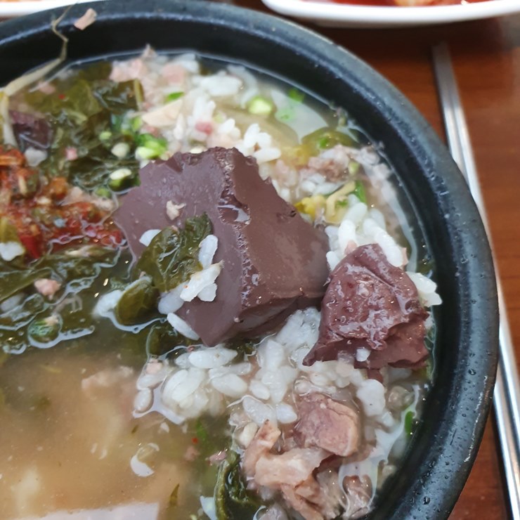 어머니대성국 해장국에는 선지가 들어 있습니다.