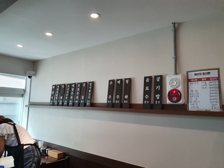 어머니대성집 메뉴판 및 원산지표시판입니다.