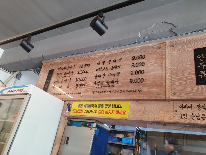 기본 순대국이 아닌 내장, 머리고기, 순대만, 여성용 순대국은 천원 더 비싼 9,000원을 받고 있네요.