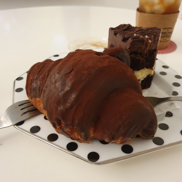존맛탱케이크 한조각과, 초코크루아상을 포장했습니다.