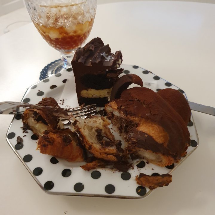 크루아상 속에 초코 커스터드크림이 들어 있었습니다.