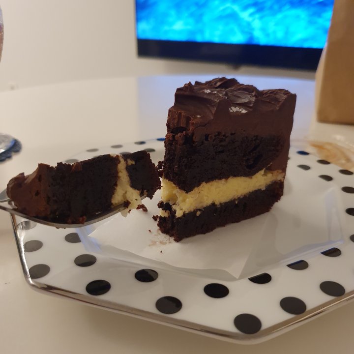 초코시트 위에 화이트시트(크림인지 화이트초코인지 잘 모르겠음) 위에 초코시트 그리고 꾸덕한 초콜렛에