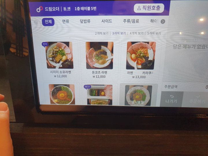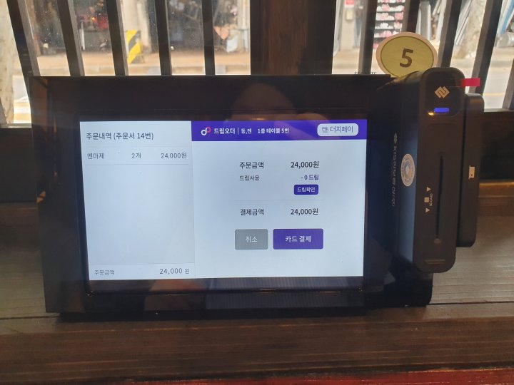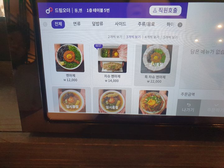 모든 테이블에는 무인 주문이 가능한 주문 결제 시스템이 설치가 되어 있었습니다.