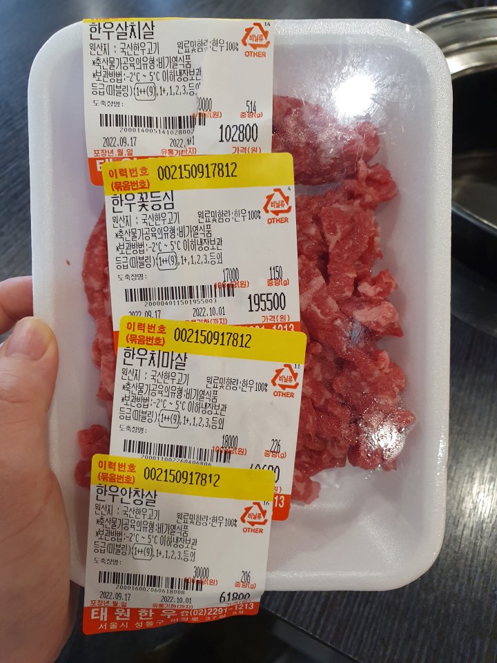 같이 가는 일행끼리 구입해서 한우를 구입하면